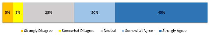 On the whole, there was widespread support from respondents in the Medium Business segment for document sharing to be part of the project management software. 37% of respondents were neutral. The remaining respondents Strongly Agree or Somewhat Agree.
